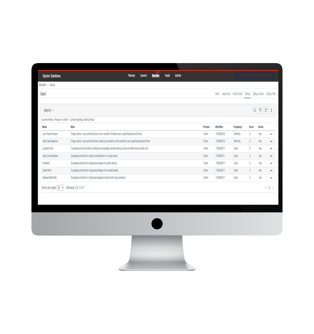 Oyster Solutions allows you to efficiently manage the surveillance, trade supervision and regulatory compliance of your client and employee trade activity. Client trade activity, investment holdings, and client profile information are compared with employee information to look for conflicts of interest, compliance parameters, and risk tolerance. The automated trade supervision tool then alerts supervisors to activity that falls outside of the firm’s customized parameters in the alert engine.